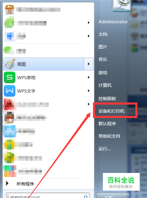 点击电脑左下角“开始”,选择“设备和打印机”。
