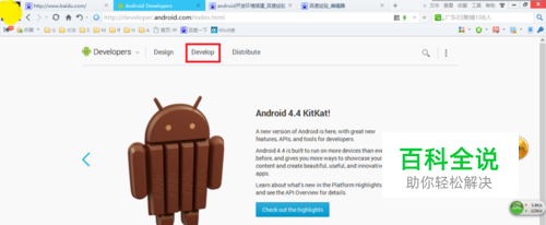 搜索Android Developers,进入“Android开发者”首页,点击“Develop”,进入“开发”页面,如下图所示:
