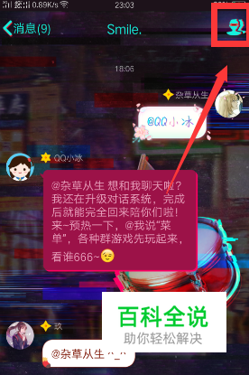首先进入QQ群的聊天页面,点击右上方的两个小人图标。