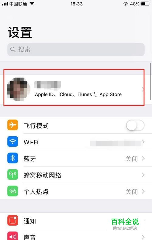 打开iPhone手机的设置点击最上方【AppleID、iCloud、iTunes与App Store】