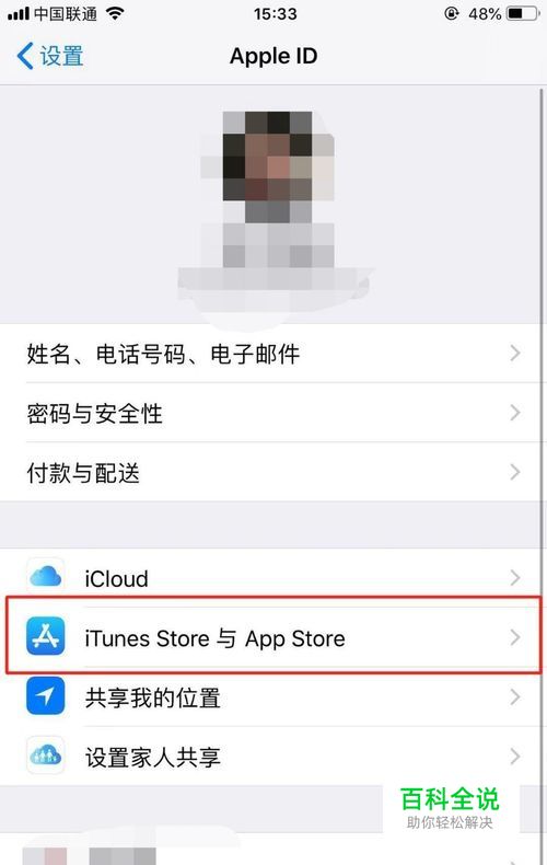 找到并点击【iTunes Store 与 App Store】