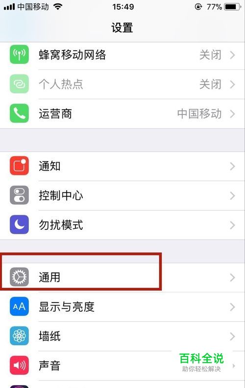 找到“通用”菜单