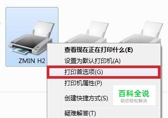 给打印机添加亚马逊外箱标签纸的规格:进入“控制面板\硬件和声音\设备和打印机”,右键单击“ZMIN H2”,选择“打印首选项”: