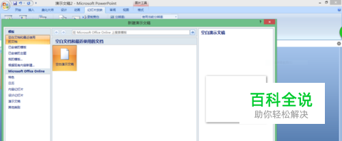 打开软件。 打开电脑自带的PPT软件,选择新建,然后我们就有了一页空白的PPT,我们就要在此进行操作。