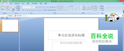 空白PPT。 然后我们删除这些会让我们PPT看起来很low的原定标题,自由发挥会比较有自己的特点。左键选定,然后delete键删除,然后我们得到了一张空白的PPT。