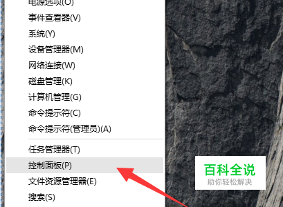 右击最下角开始菜单,打开控制面板,如图
