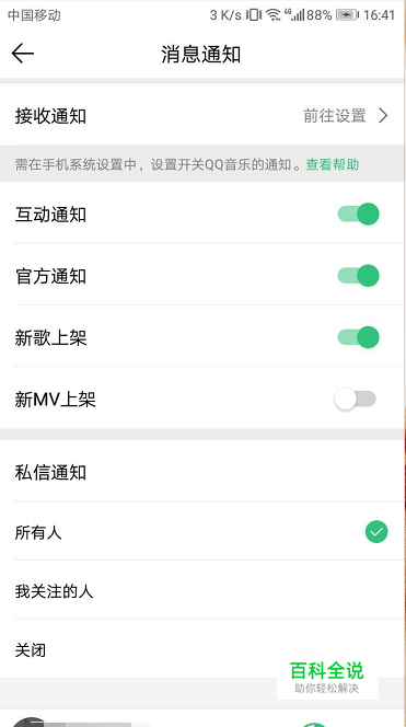 打开消息通知之后,在页面就可以看到有个新歌上架,新MV上架,如下图