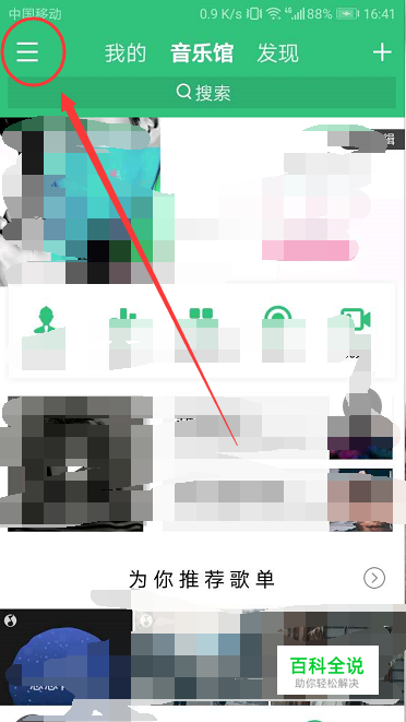 首先打开手机QQ音乐,然后点开页面左上角的 三横杠,如下图