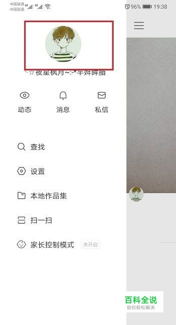 第二步打开侧边栏之后,选择个人头像,如下图所示: