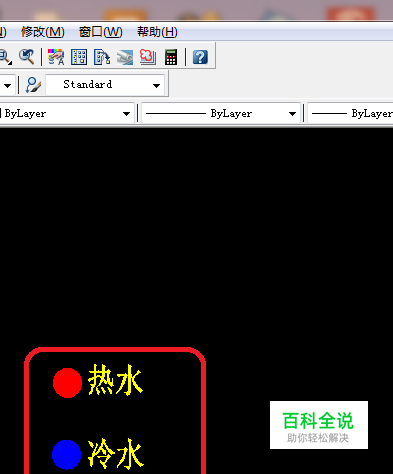 cad怎么画水示意图,水管分有热水和冷水,在cad里用什么来表示呢,如下图有解说。