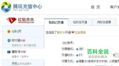进入QQ秀界面后,点击网页顶部按钮“开通红钻”,在新页面中将选项卡切换到“给自己开通”,然后切换左侧选项卡为“手机”。
