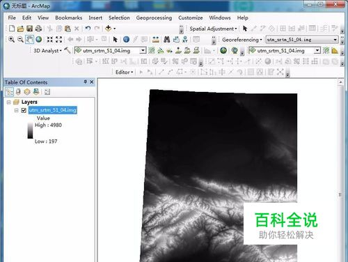 打开Arcmap,加载dem数据。这里就以下图作为示例。
