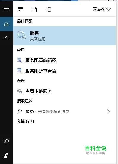 首先点击电脑键盘上的组合键win+s,在弹出的删选器中输入服务,点击回车