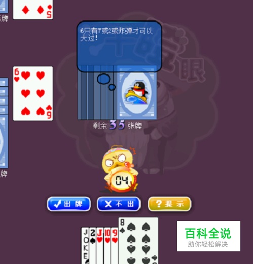 如图:对方先下了一个单张,但是我们比他大的数字之间有间隔是不能出的,只有大一个数的牌才能下,也就是7或2;由于2是顶牌。