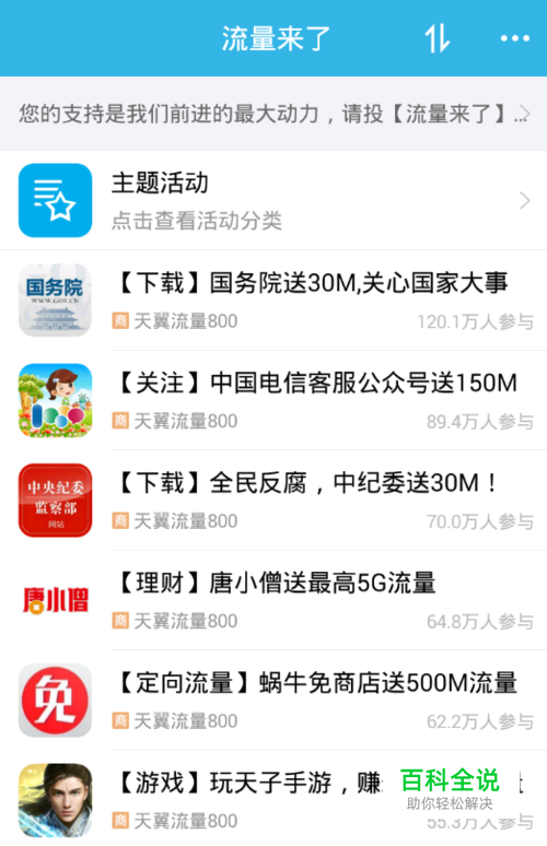 第四步:进入到游戏类的免费活动列表后你就可以选择你想参加的活动了,然后按照该活动的要求进行操作就可以了,完成后填写你的手机号码就可以领取流量了!