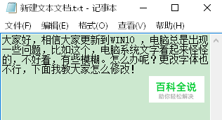 大家好,相信大家更新到WIN10 ,电脑总是出现一些问题,比如这个,电脑系统文字看起来怪怪的,不好看,有些模糊。怎么办呢?更改字体也不行,下面我教大家怎么修改!