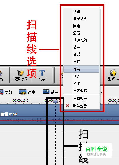时间轴(项目轨道) 时间轴是剪辑软件最具有特征的一个结构,它的作用可以说是最主要最主要的,我们编辑视频都需要在时间轴上进行。 简单的说,将视频、音频等拖入对应轨道进行编辑,整个工程就像流水线操作一样。这块加点特效,那块加点字幕和转场。 一般来说视频需要拖入视频轨道,音频需要拖入音频轨道。特效、字幕可以作为视频素材和视频轨道重叠来产生影视效果。 时间轴上面还有一个细线,即扫描线,顾名思义,扫描线扫过的部分你可以在预览上面查看到,扫描线会将经过的轨道上面有的东西都呈现在预览屏幕上面。同时,扫描线也执行着分割、标记的重要作用!