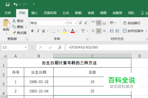 首先小编这里有三个出生日期,接下来小编依次使用三种方法将出生日期计算出对应的年龄,如下图: