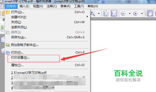 点击“文件”完选项之后,弹出下拉的菜单中选择“打印设置”的选项。