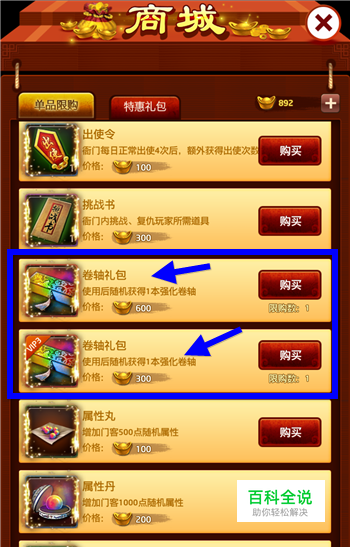 商城购买 极品芝麻官获得强化卷轴的最主要方式就是去商城购买。强化卷轴算是游戏中比较重要的升级材料,普通玩家需要支付600元宝才能获得一本强化卷轴(还要计算失败的可能性),元宝数量则直接和人民币挂钩,600元宝已经算非常多了。