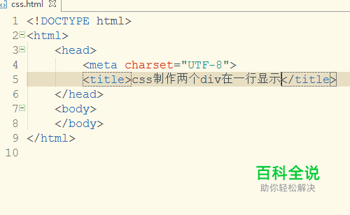 打开html开发软件,在html开发工具上新建一个html页面,用于实现多个div显示在同一行上。