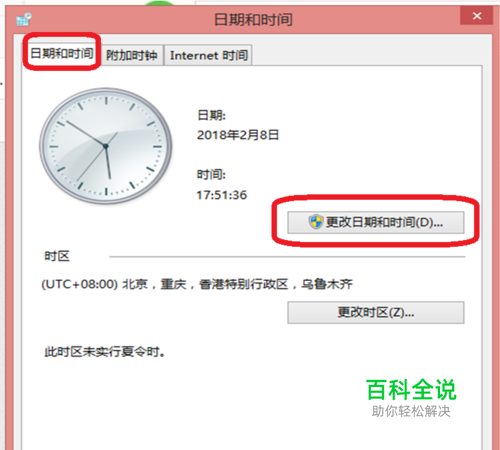系统就会自动弹出日期和时间的选项卡,根据需要可以更改区时,或者更改日期和时间。这一步与方法1的第二、第三、第四、第五步的方法相同。