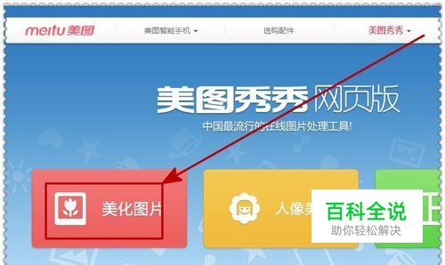 打开美图秀秀软件,点击菜单上的“美化图片”按钮,打开进入下一步操作,如下图示。