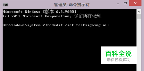 第二步: 打开命令提示符后输入“bcdedit /set testsigning off”(不含引号),输入后回车,提示操作完成后重启,如下图Win8/8.1及Win7: