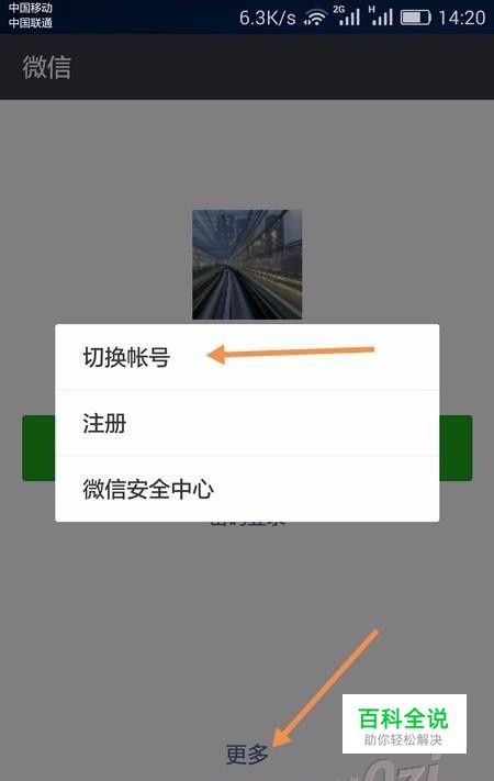 在手机上打开微信,从登录界面,进入更多,点击 切换帐号