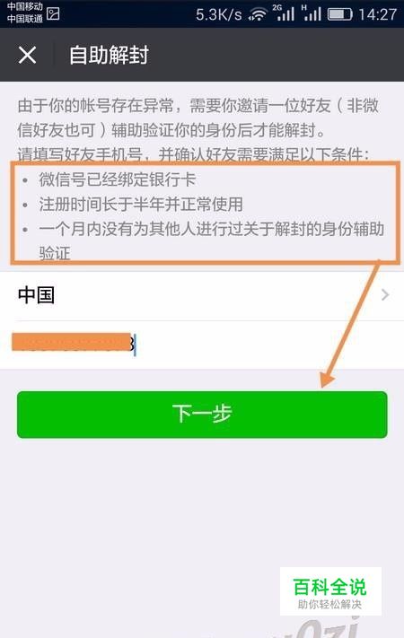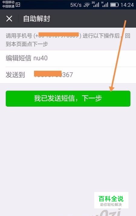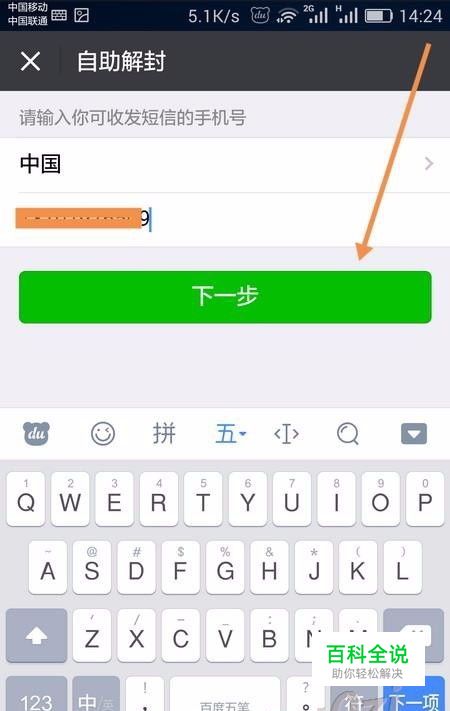 在自助解封首页,输入一个可收发短信的手机号,然后 下一步