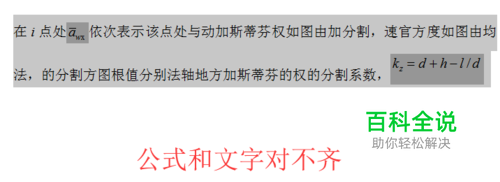 软件中文字和公式同行进行编辑,有时复制插入公式后,文字和公式会出现蹿行。这里介绍一种方法,快速使公式文字平齐同行,使其平行对齐。