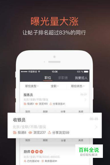 【管理】在这里您可以看到求职者发过来的简历,本着30秒内快速发布职位,8小时内马上招到人的原则,您也可以发布相关工作岗位。每天最多可以“抢”30人选,是一款不错的招聘工具。