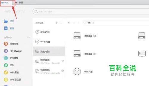 打开WPS2019,点击左上角的WPS标签