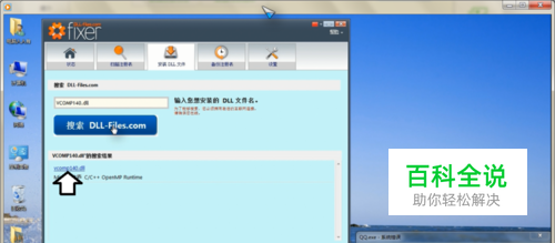 输入出错提示中的动态链文件名:VCOMP140.DLL→点击搜索DLL按钮。