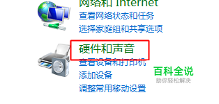 然后,单击“硬件和声音”