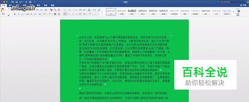 首先我们要看一下要除色的背景色是什么样子的,才能决定怎样删除,下面这个图片你看到了,页面中任何地方都是绿色的,不管有字还是没字,这说明这个整个页面的背景色是绿色,解决方法如下。