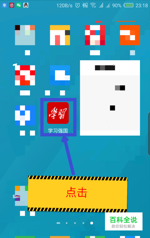 在手机桌面上,找到学习强国软件,点击打开软件。如图所示
