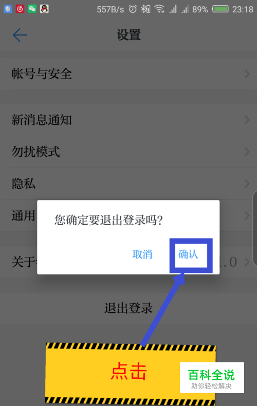 打开设置界面后,能看到最下面是退出登录选项,点击退出登录。如图所示