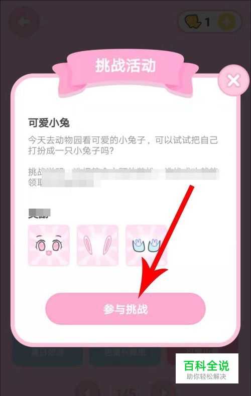 在“挑战说明”页面查看关卡介绍,得到的提示是:将自己打扮成一只小兔子。然后点击下面的“挑战关卡”