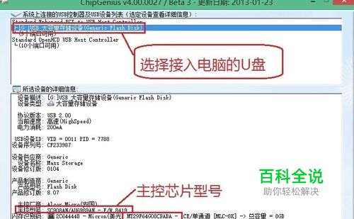 插入U盘,软件自动识别U盘,显示主控芯片,与闪存识别码