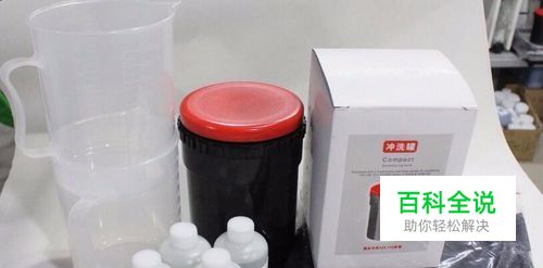 第四步骤 找到冲洗套装中的显影水槽,按照说明书上的指示将水槽分为各种不同的部分,并用热水进行冲洗。如果是二次使用的话,一定要将之前残留的污渍进行冲洗干净。需要特别注意岁冲洗中柱,保质中柱可以遮光。