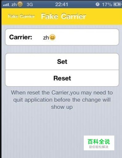 然后点 Set 栏 后 重启手机 你就会看到状态栏上运营商名字换成了你喜欢的名字