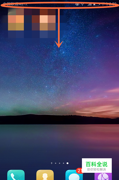 1.第一步,按住手机屏幕的顶端 向下滑动;
