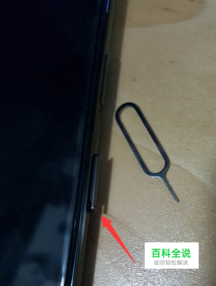 关机后首先用取卡针将卡槽顶出,如下图所示