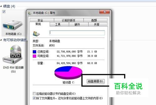 这时会出现对话框,找到“磁盘清理”,点击它。