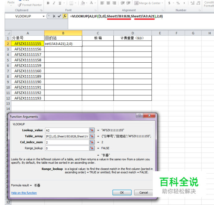 VLOOKUP函数与IF函数的配合使用二:多条件查找(用目的站/件数/重量去查找分单号)