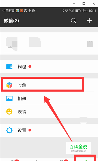 打开微信,点击“我”,选择“收藏”。