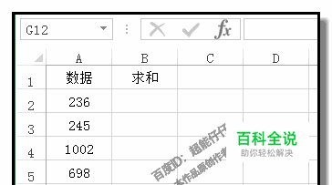 在B2单元格输入公式:=SUM(A2:A7)