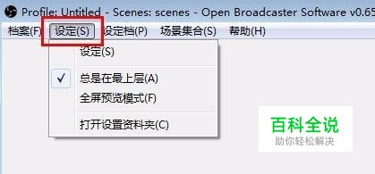 第一步,我们打开Open Broadcaster Software,选择上方菜单栏的【设定】。