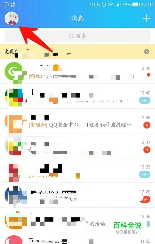 进入手机qq,点击左上角头像。